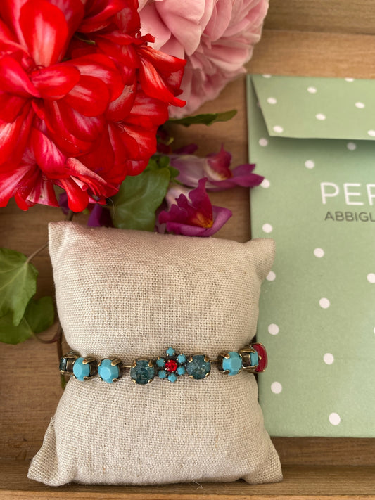 Bracciale con cristalli turchesi e dettagli rossi DIMITRIADIS