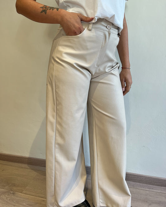 Pantaloni palazzo ecopelle con tasconi art. 224155-PE25