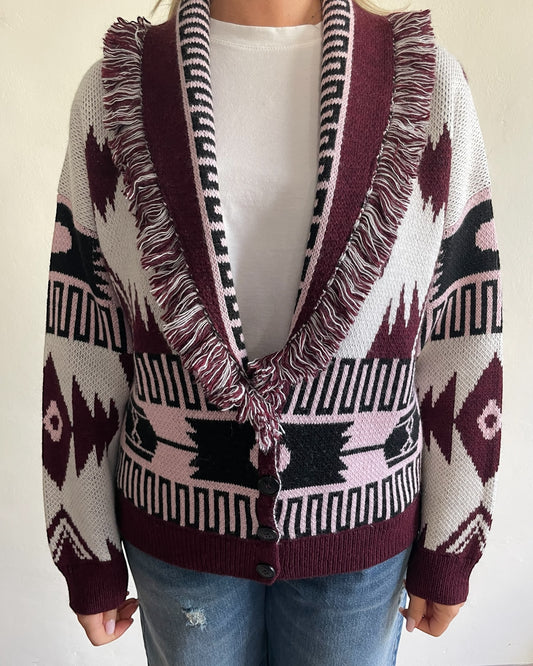 Cardigan frange e stampe rombi art. W5HMG65A400 TENSIONE IN