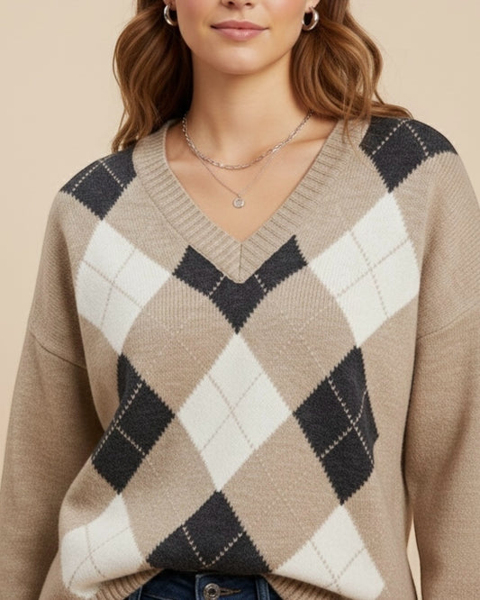 Maglia rombi scollo V lurex art. D82060 TENSIONE IN
