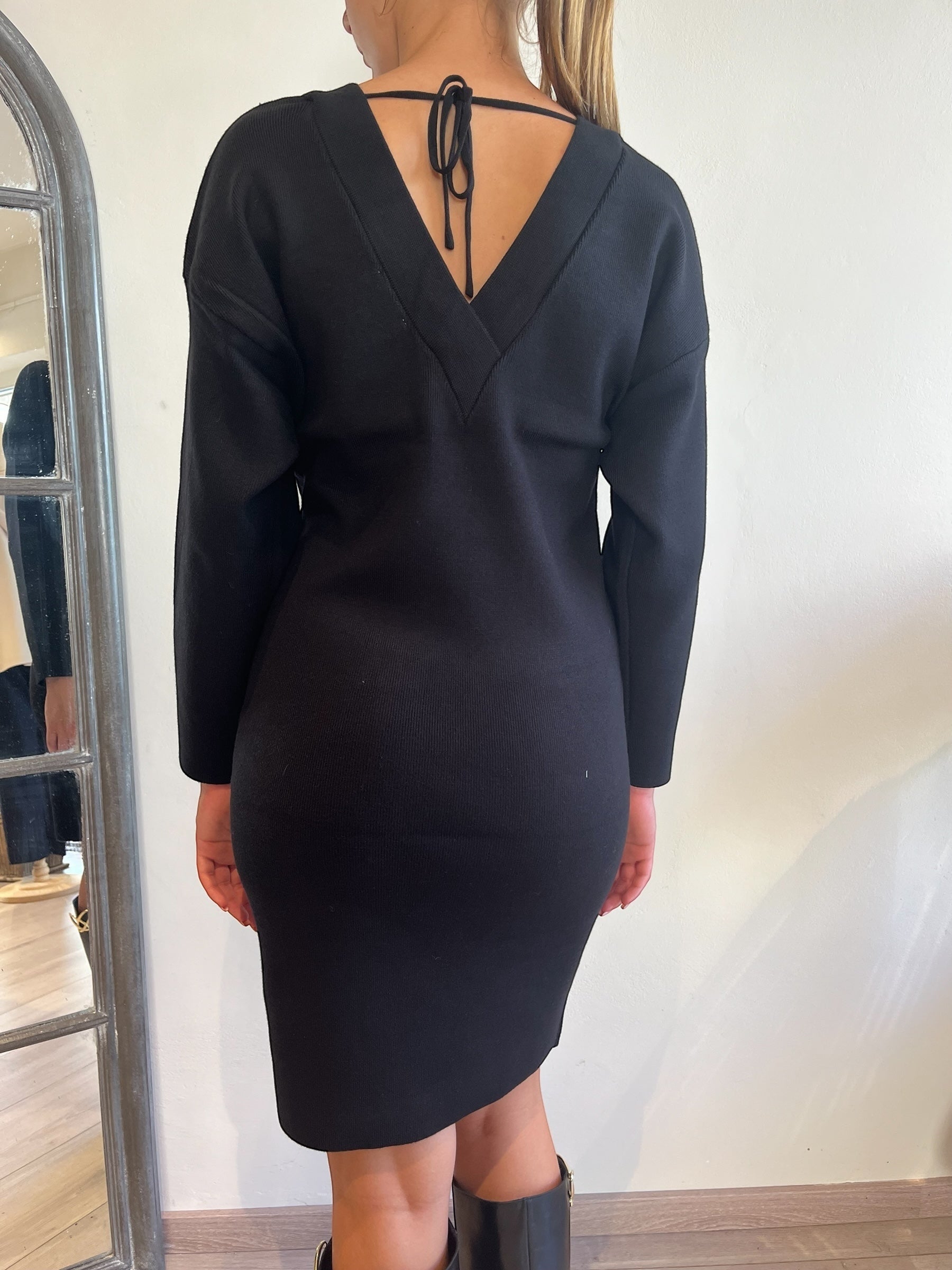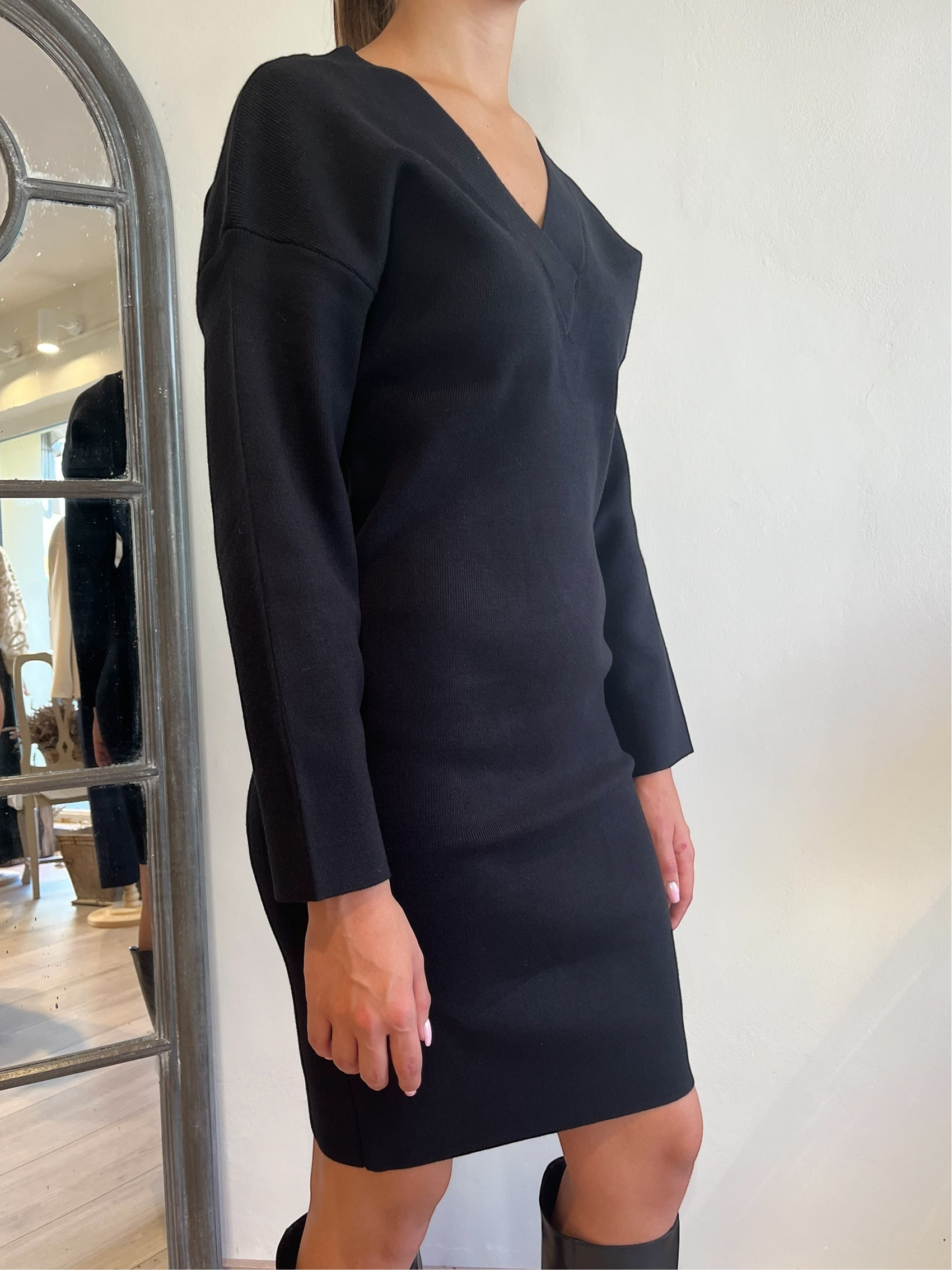 Un'abito con scollo a V che valorizza la silhouette in modo sofisticato. La vestibilità è studiata per garantire comfort e stile in ogni occasione formale. Realizzato con materiali selezionati di alta qualità, assicura durata e piacevolezza al tatto.