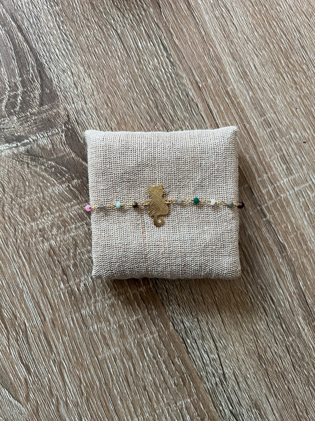 Raffinato braccialetto con ciondoli in metallo dorato e delicate perline. Perfetto per aggiungere un tocco giocoso e chic ai tuoi look quotidiani o speciali. Leggero per un comfort tutto il giorno.