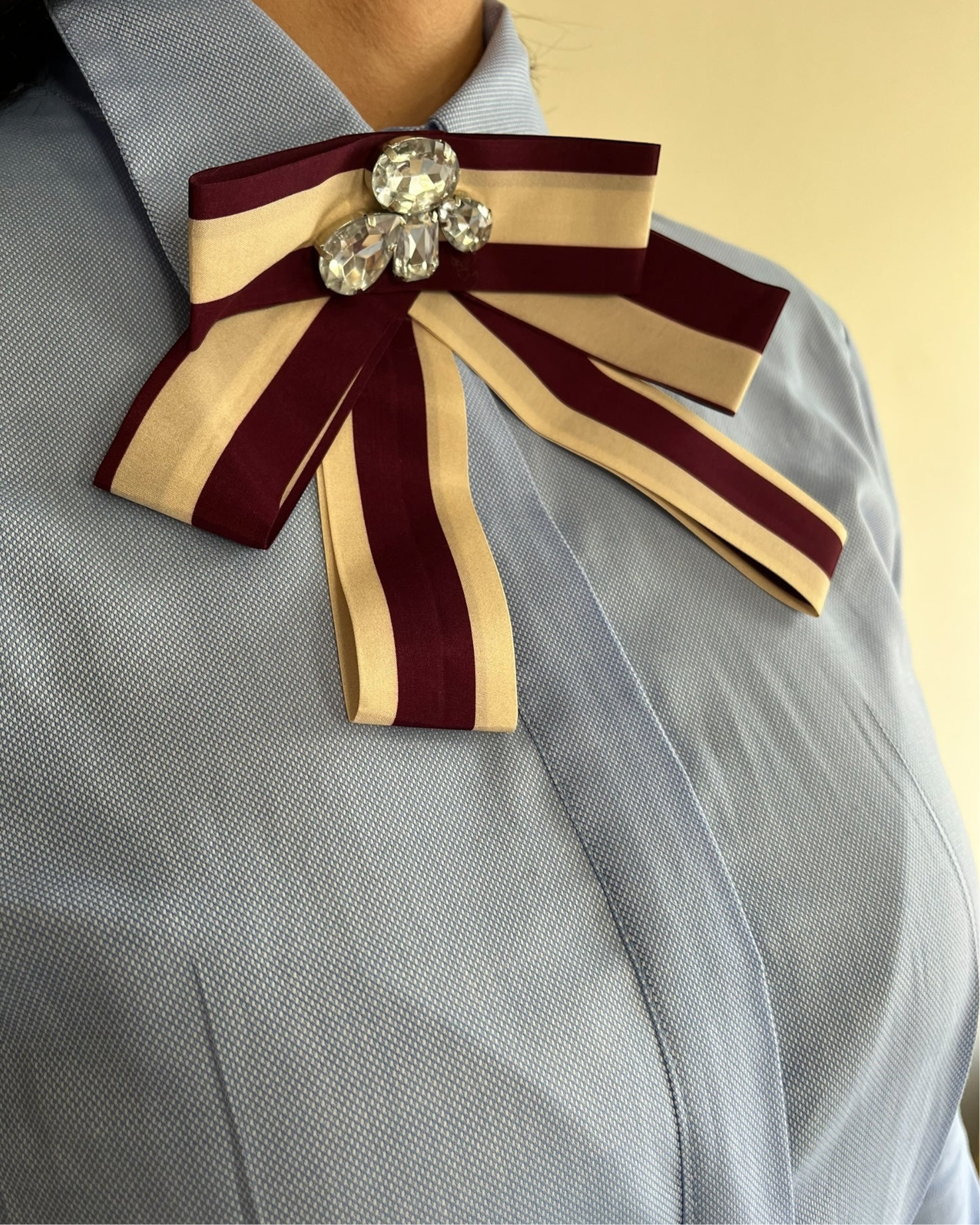 Camicia dal taglio sfiancato che valorizza la silhouette con un elegante fiocco sul colletto. Il design raffinato si adatta perfettamente a look formali o casual sofisticati. Realizzata con cotone di alta qualità, offre grande comfort.