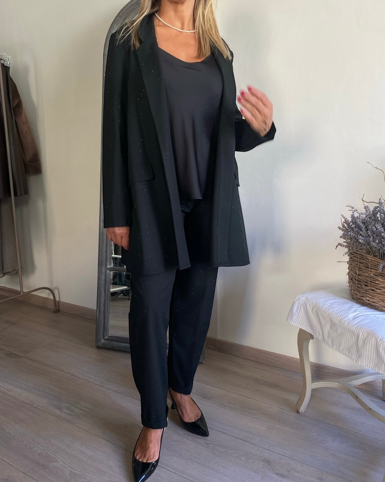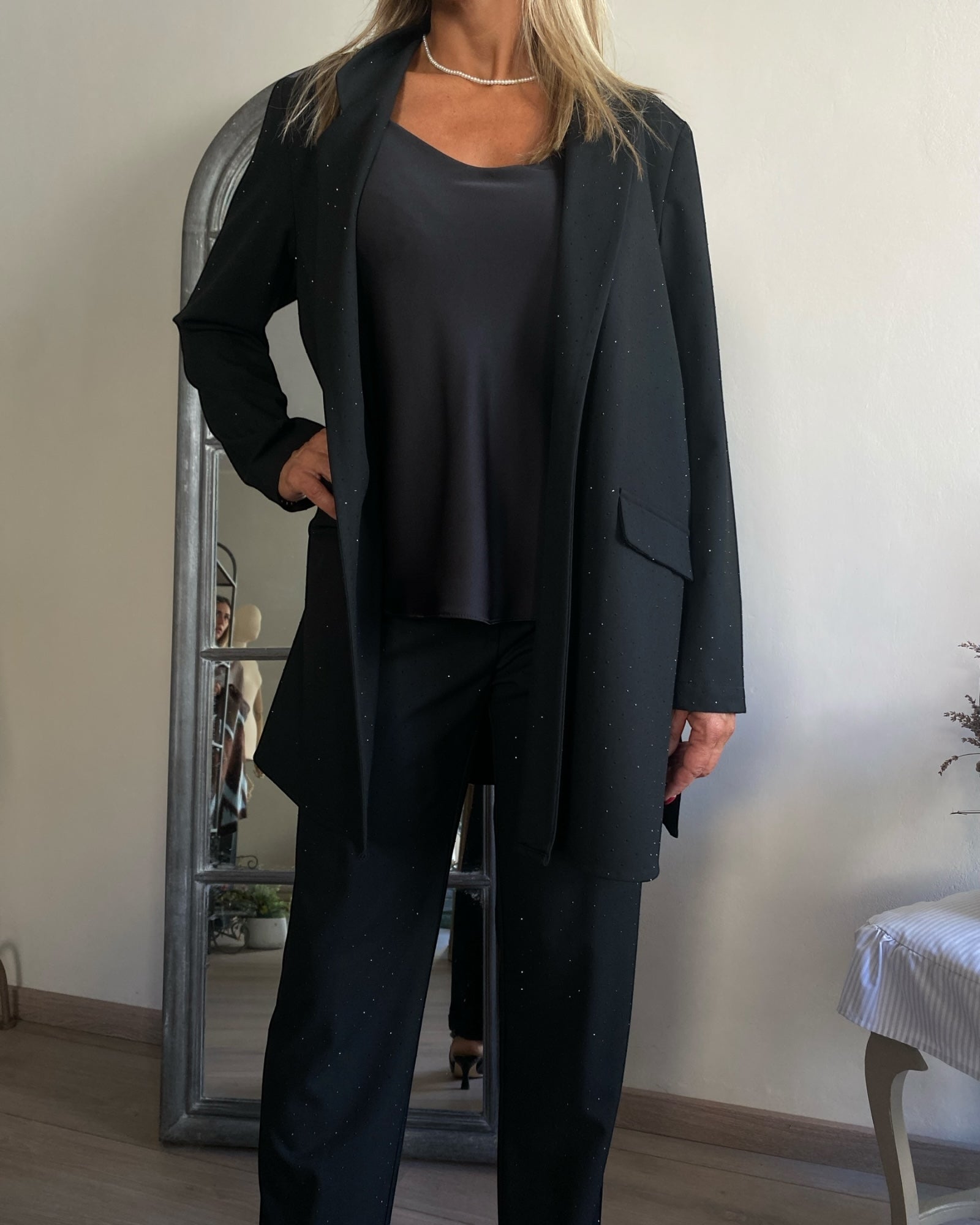 Ggiacca lunga che offre una vestibilità elegante e confortevole. La linea sartoriale valorizza la silhouette, mentre i dettagli studiati assicurano un look raffinato e versatile. Ideale per un abbigliamento formale o casual di classe.