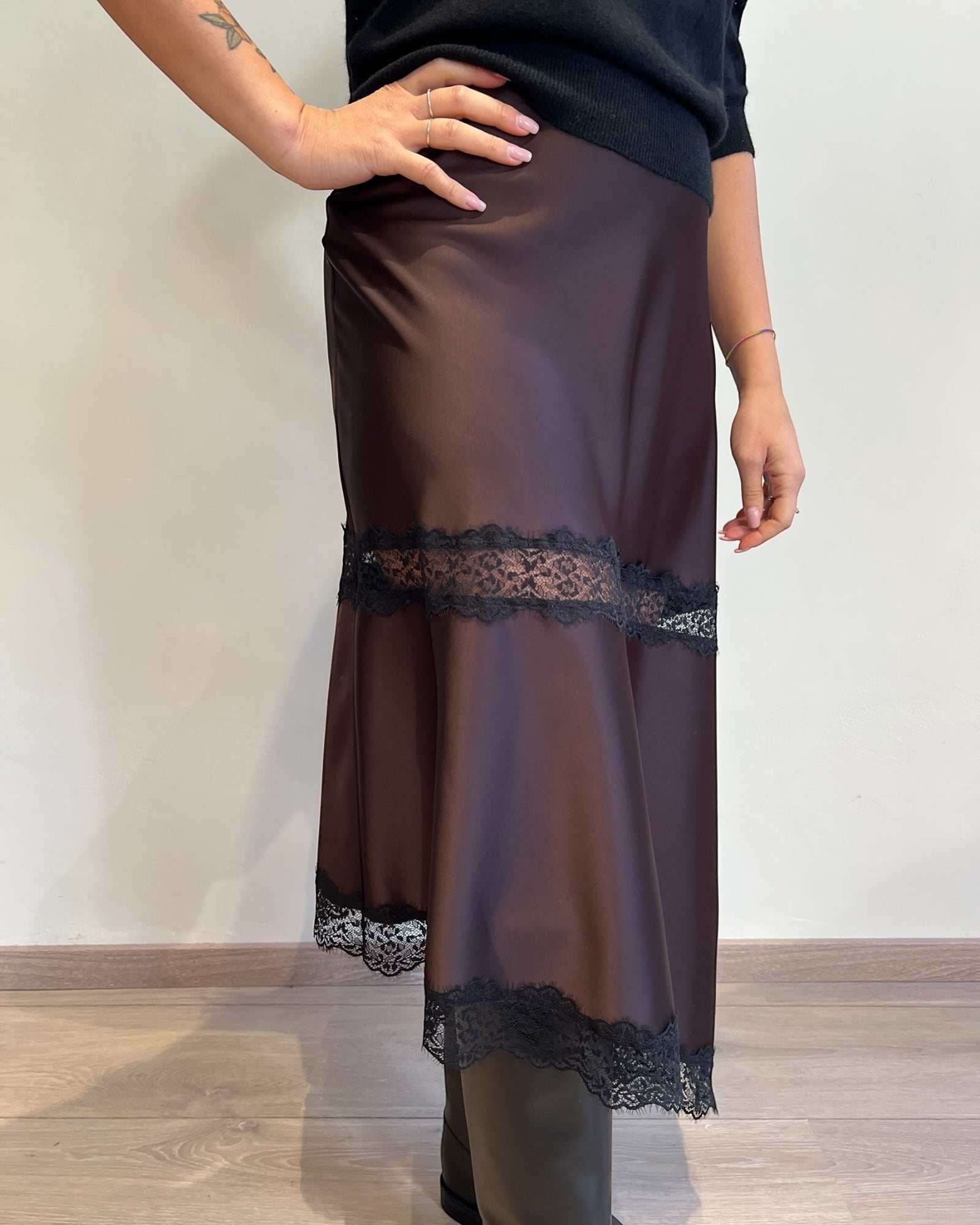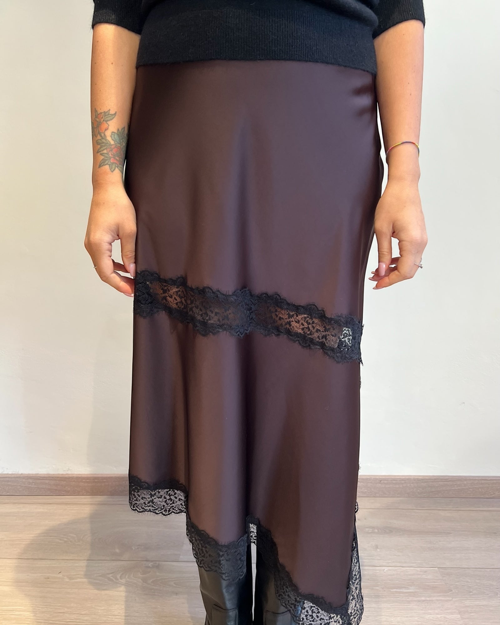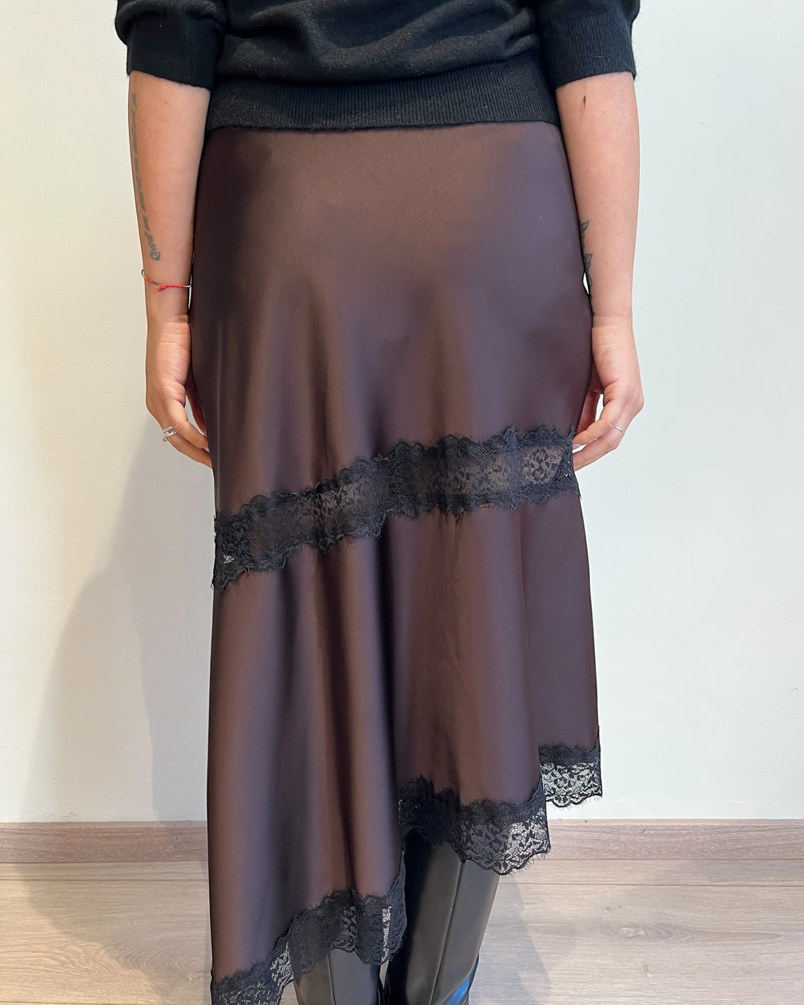 Gonna Midi obliqua con dettagli in pizzo art. GMK7KBA IMPERIAL