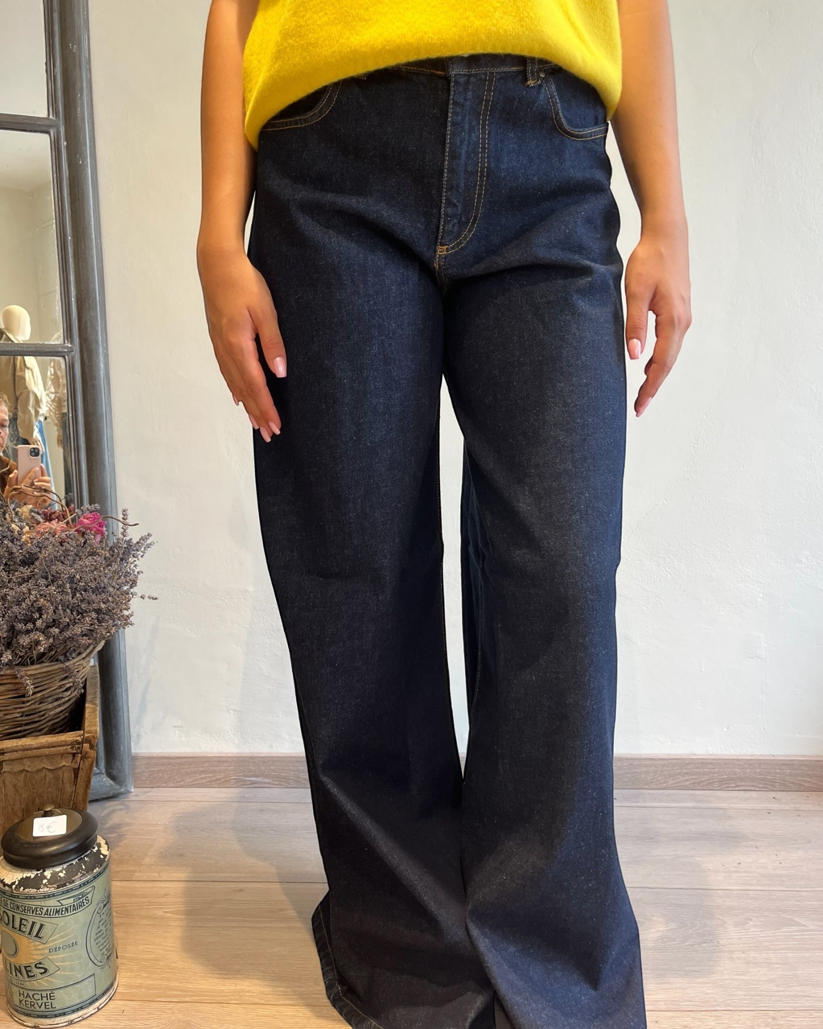 Jeans pantagonna ampio con vita regolare e gamba fluida.