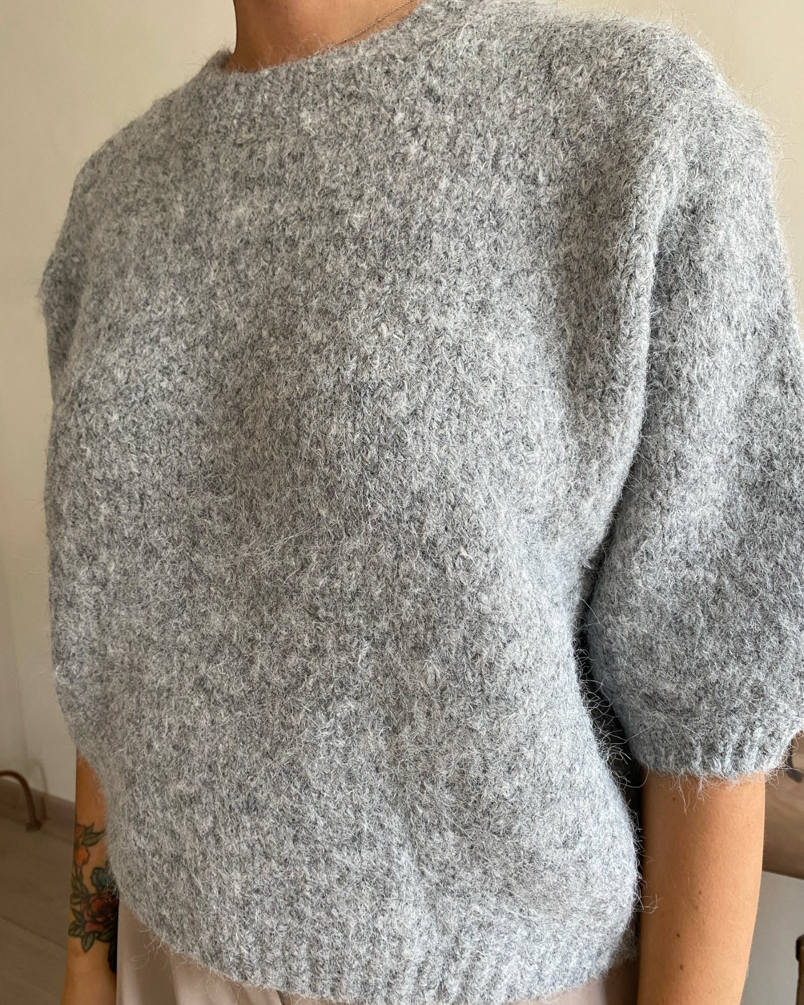Maglione in tessuto morbido con maniche a tre quarti, caratterizzato da una vestibilità boxy che garantisce comfort e stile contemporaneo. Perfetto per un look casual ma curato.