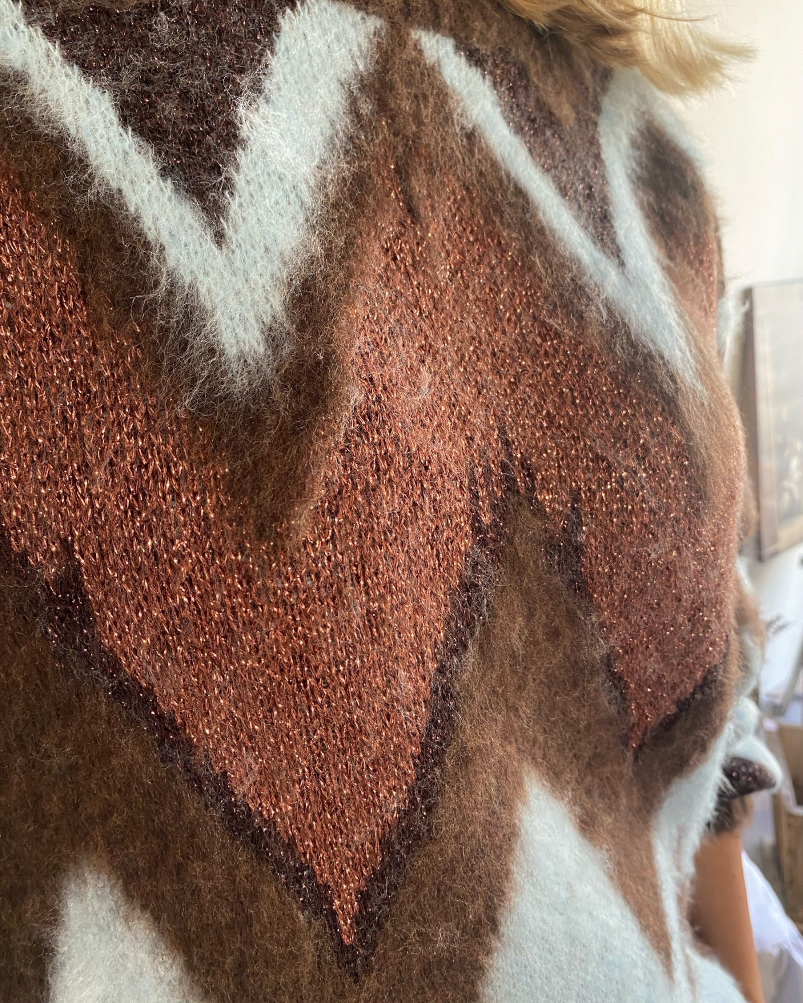 33% acrilico 24% mohair 24% poliammide 15% viscosa, 4% fibra metallica