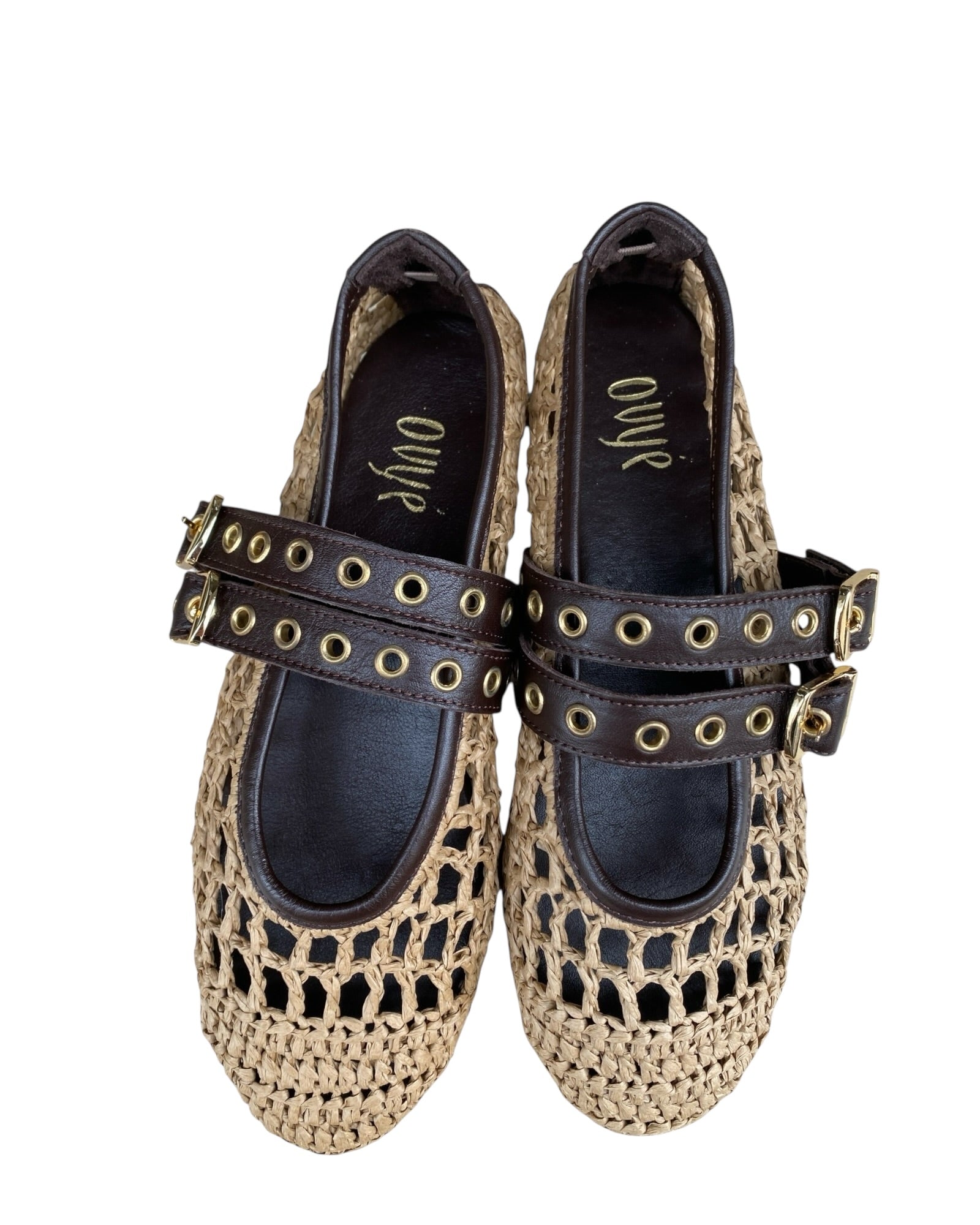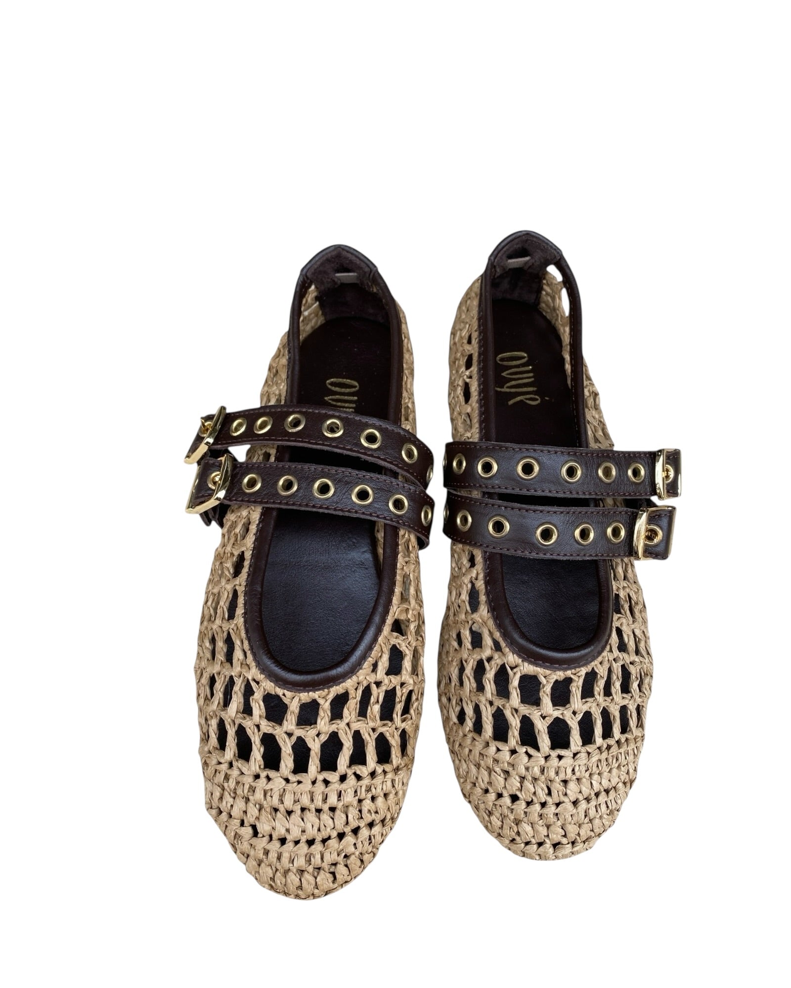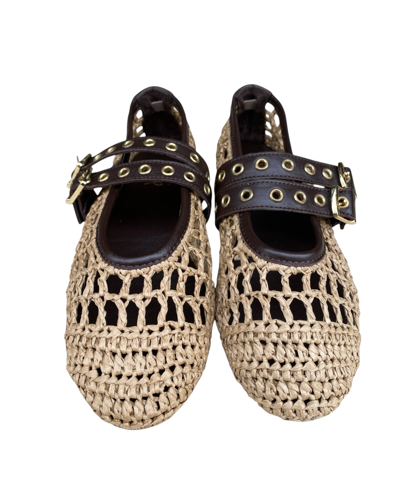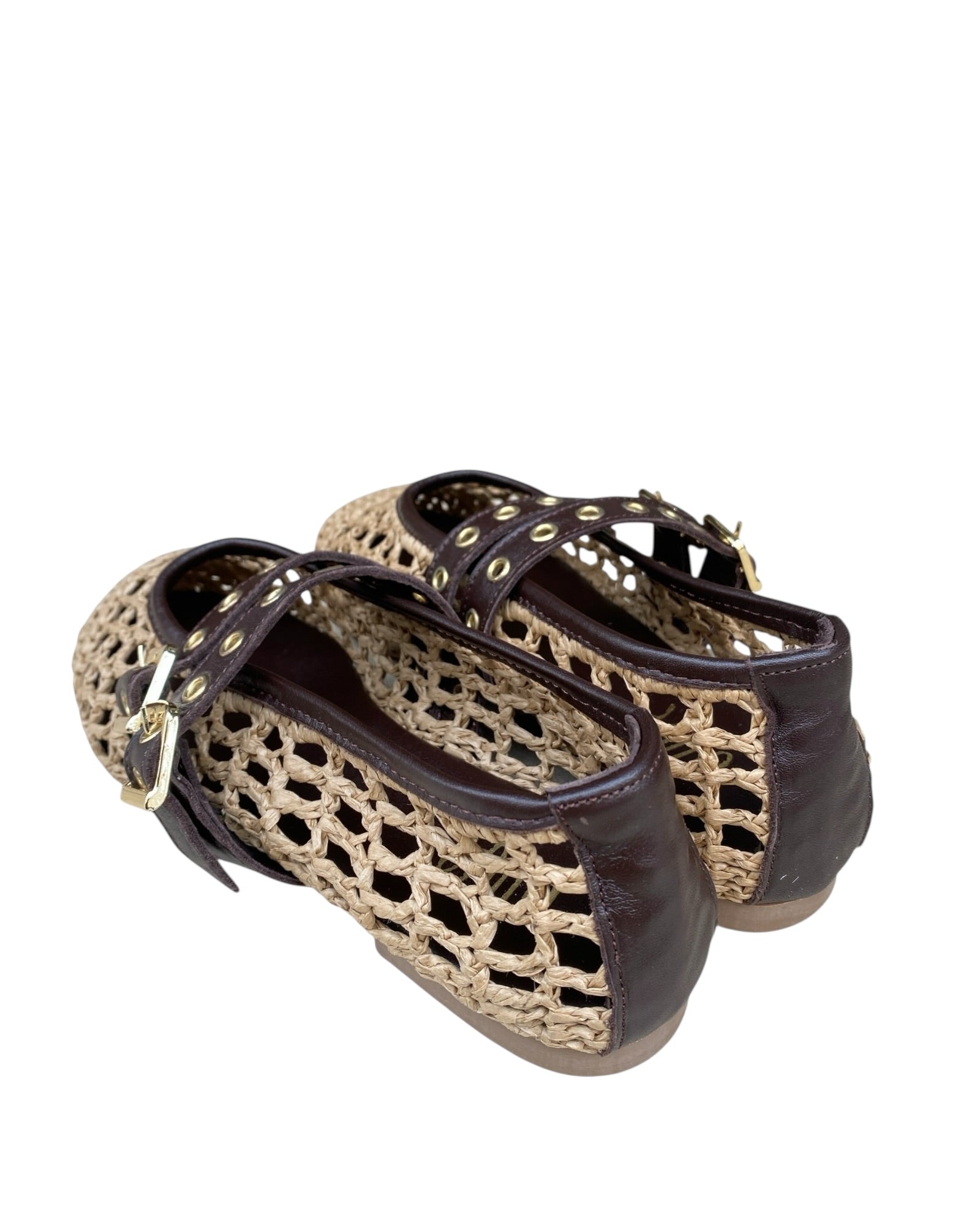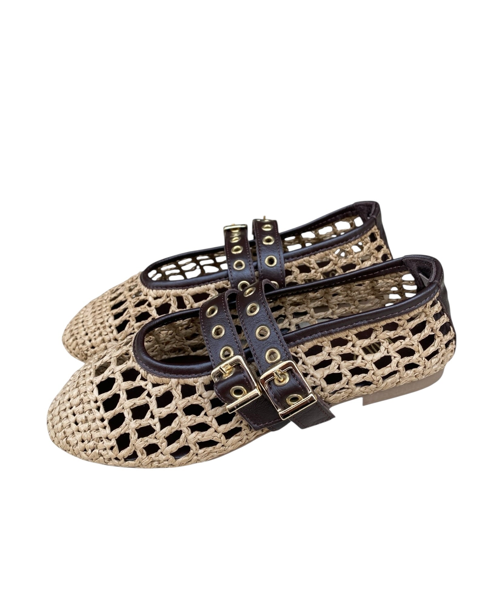 Ballerina in rafia con doppio cinturino in pelle