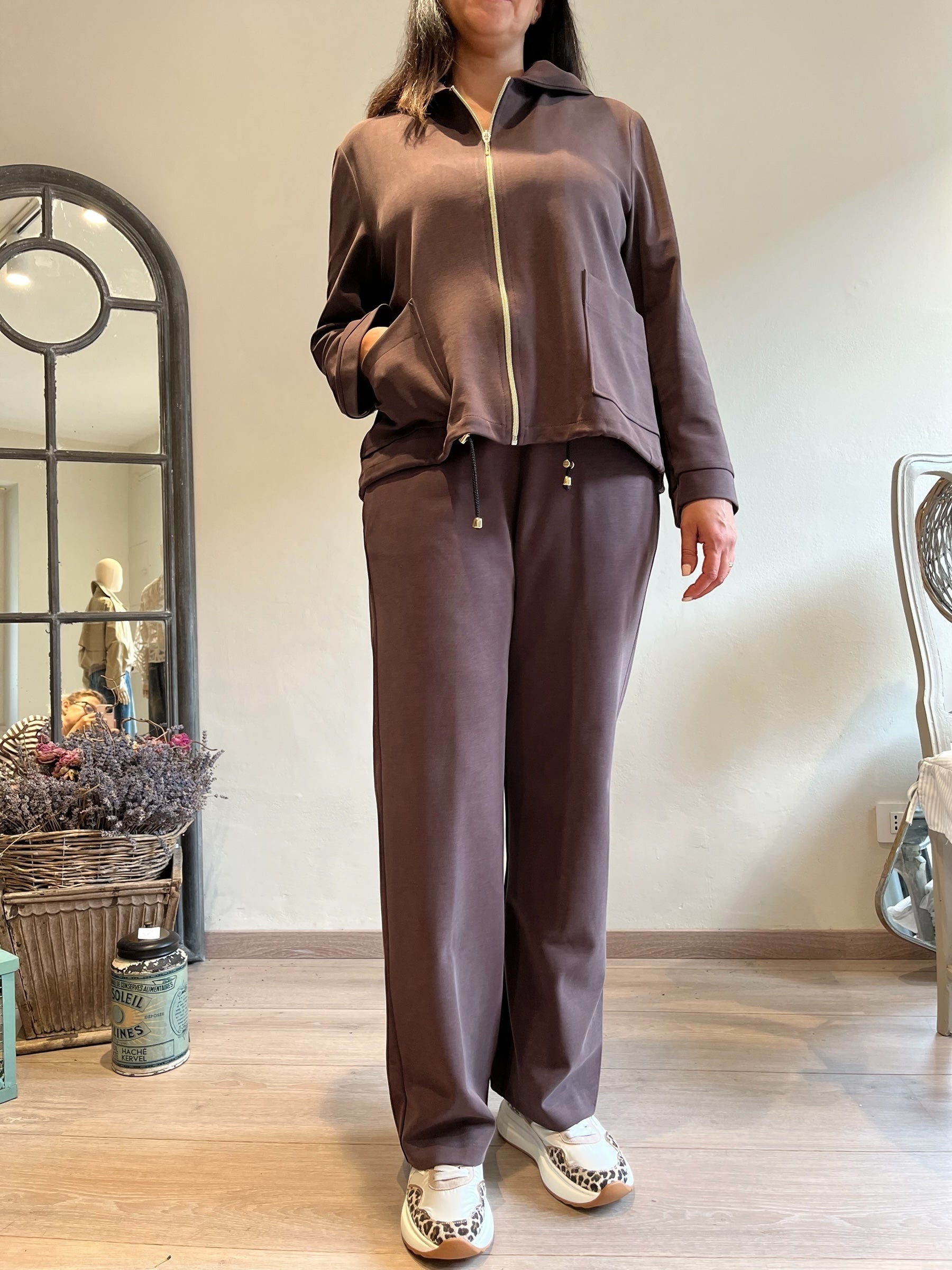 41% Modal 38% poliestere 18% viscosa 3% elastan made in Italy