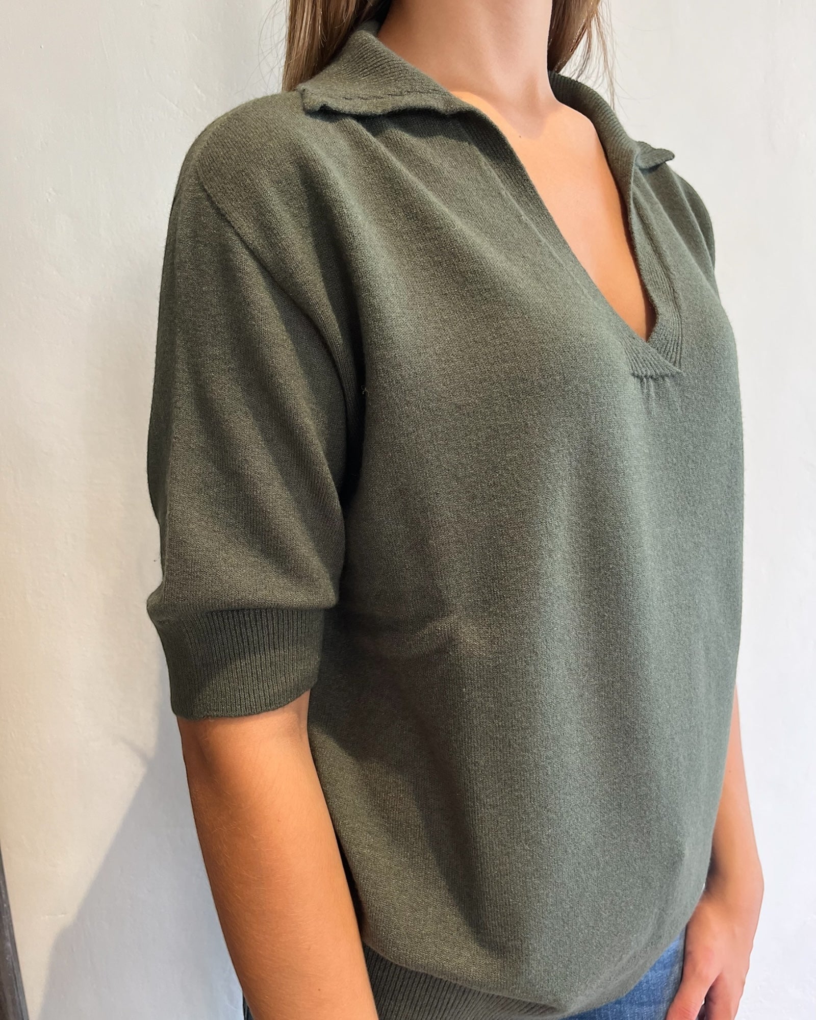 Il taglio morbido e lo scollo a V donano un tocco moderno e versatile, ideale per look casual ma curati.