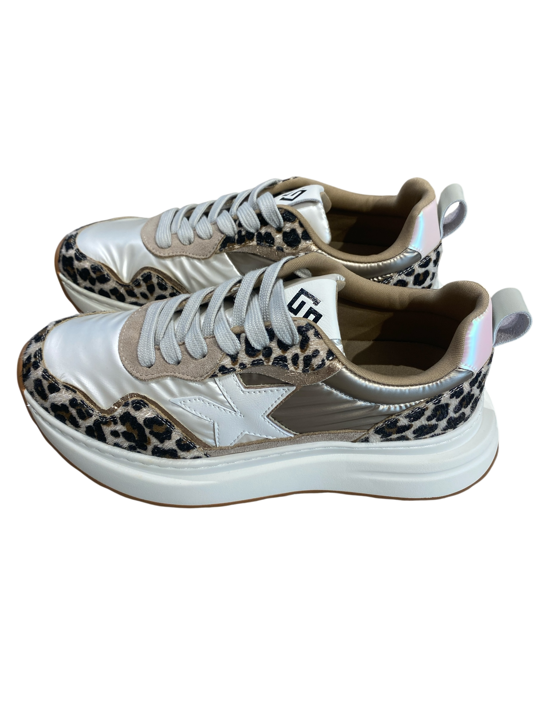 Sneaker in simil pelle con dettagli animalier e stella laterale, dal design dinamico e contemporaneo.